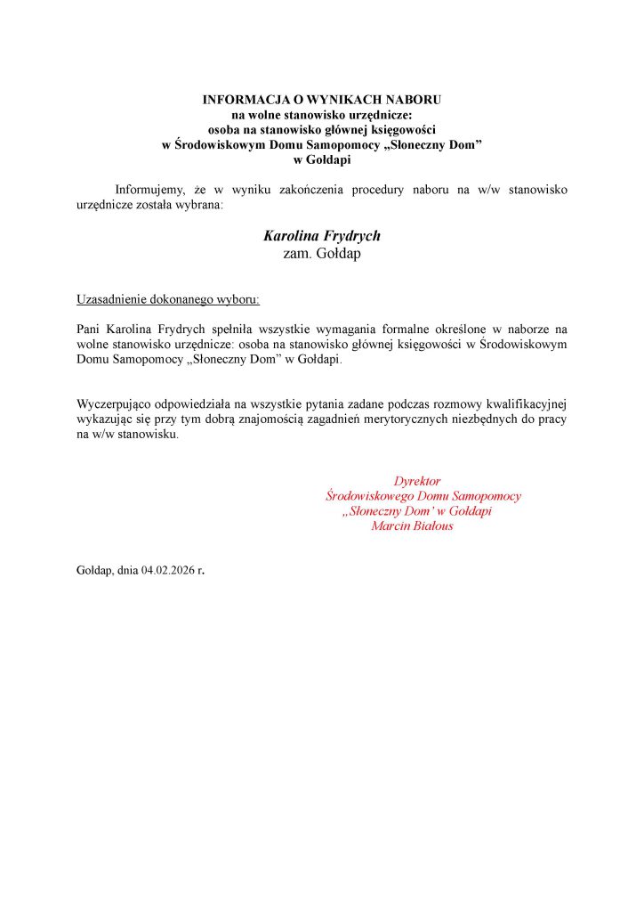 „Nabór na wolne kierownicze stanowisko urzędnicze – Dyrektora ŚDS w Gołdapi”