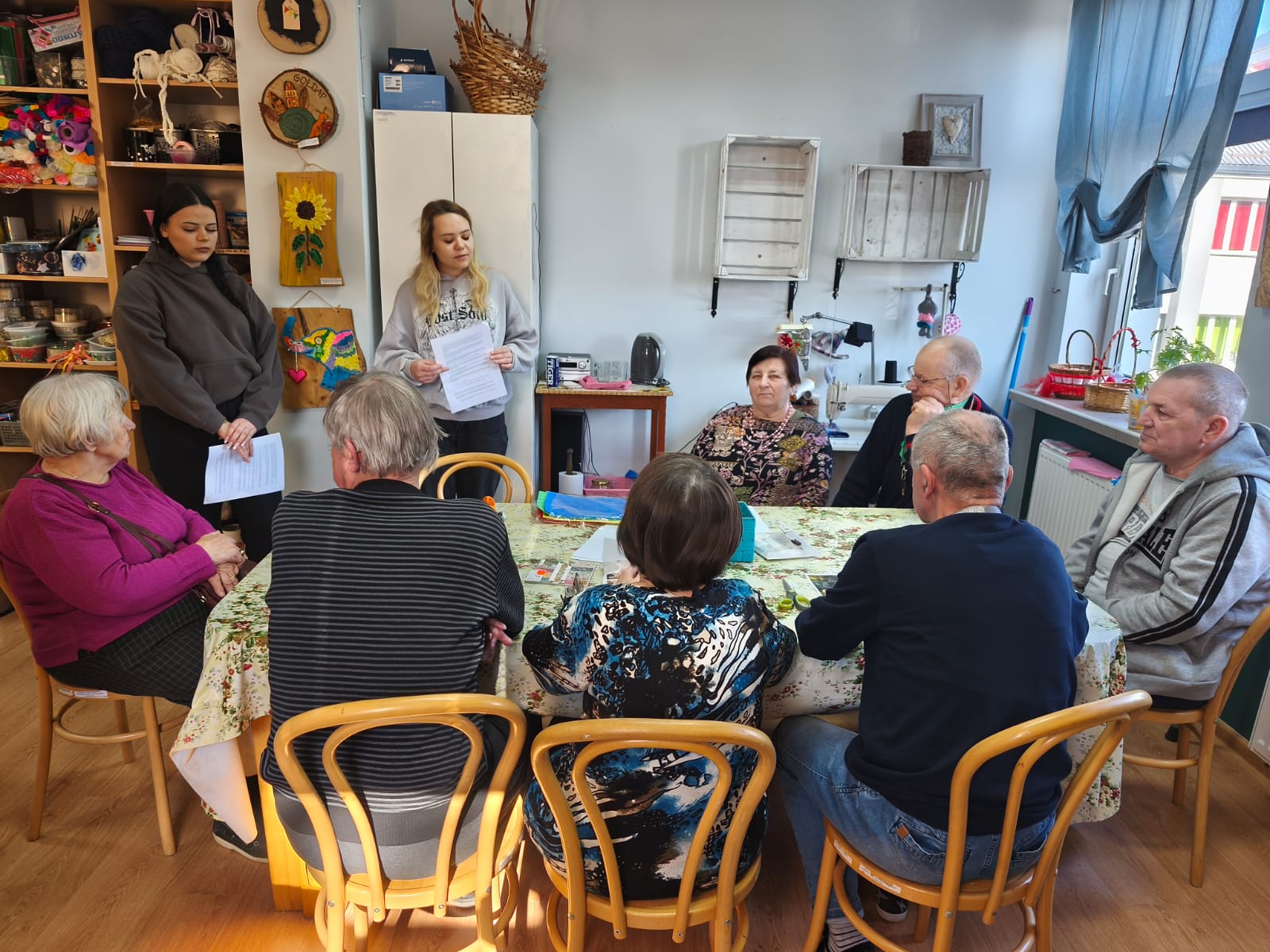 W naszym domu odbyły się zajęcia plastyczne poświęcone zdrowiu psychicznemu, w ramach projektu „Otwórzmy się na słowa”. Realizatorkami spotkania były panie: Katarzyna Grzenda i Roksana Masianis. Zajęcia zostały przeprowadzone w przyjaznej, twórczej atmosferze. Serdecznie dziękujemy za odwiedziny i wspólną zabawę.