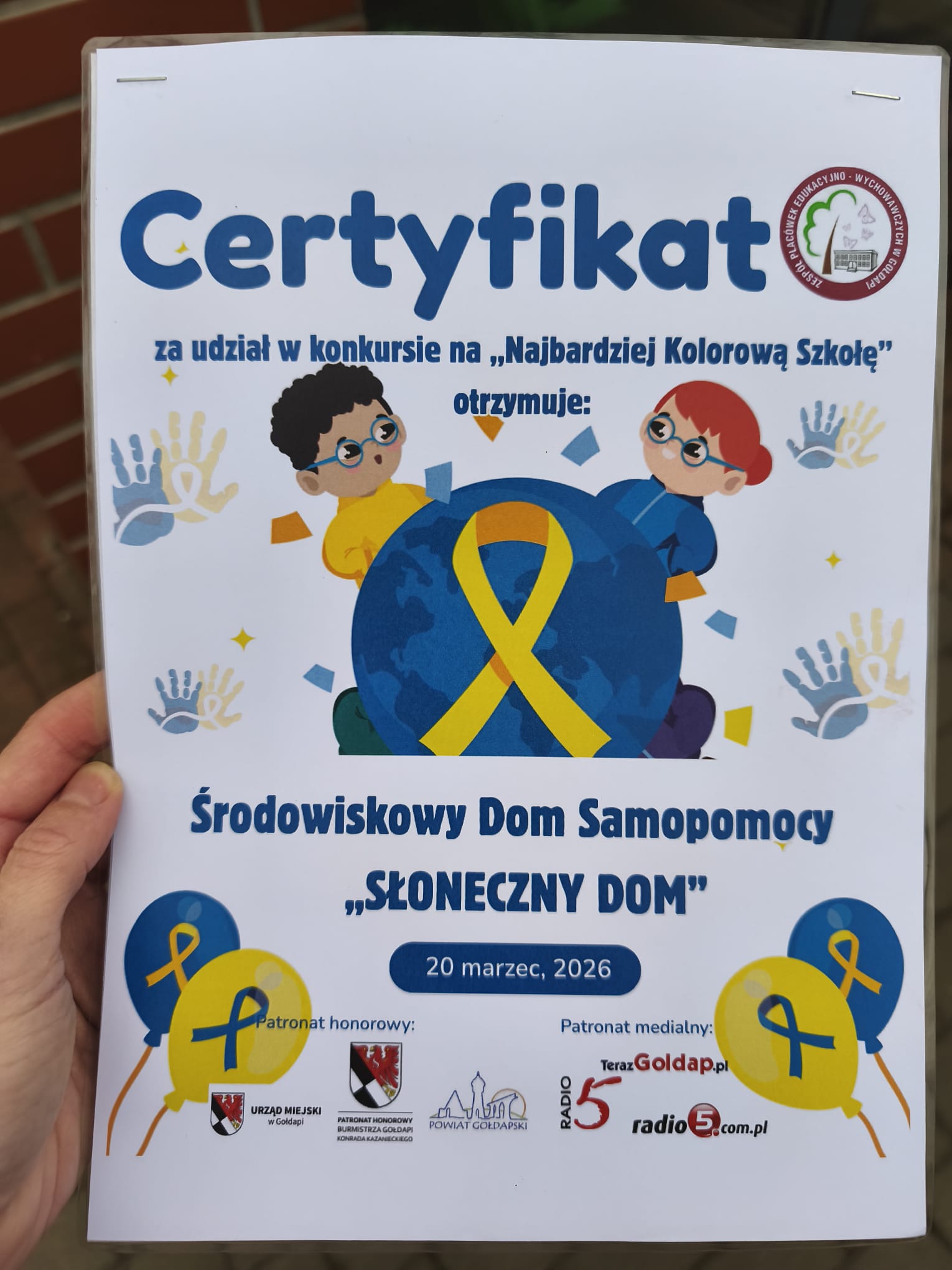 Na zaproszenie Zespół Placówek Edukacyjno-Wychowawczych w Gołdapi (za które serdecznie dziękujemy) wzięliśmy udział w Obchodach Światowego Dnia Zespołu Downa. W związku z faktem, że zaproszenie obejmowało również konkurs na najbardziej kolorową placówkę, to przybyliśmy na kolorowo 🙂